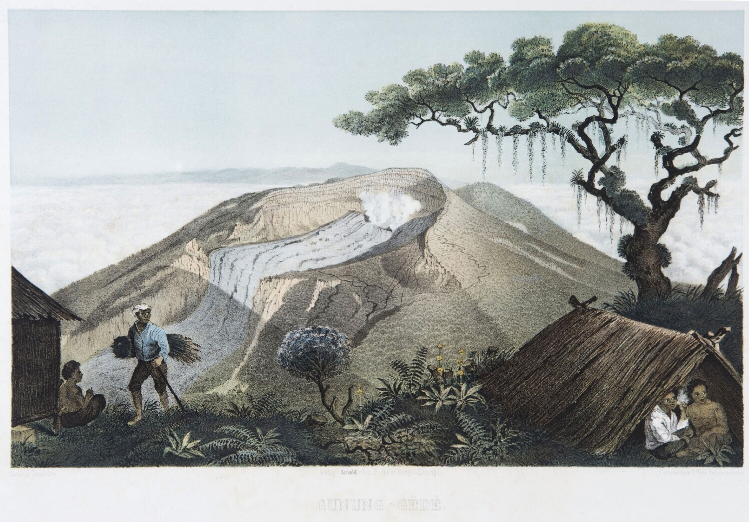 Uitzicht op de Pangerango vanaf de plantentuin in Bogor