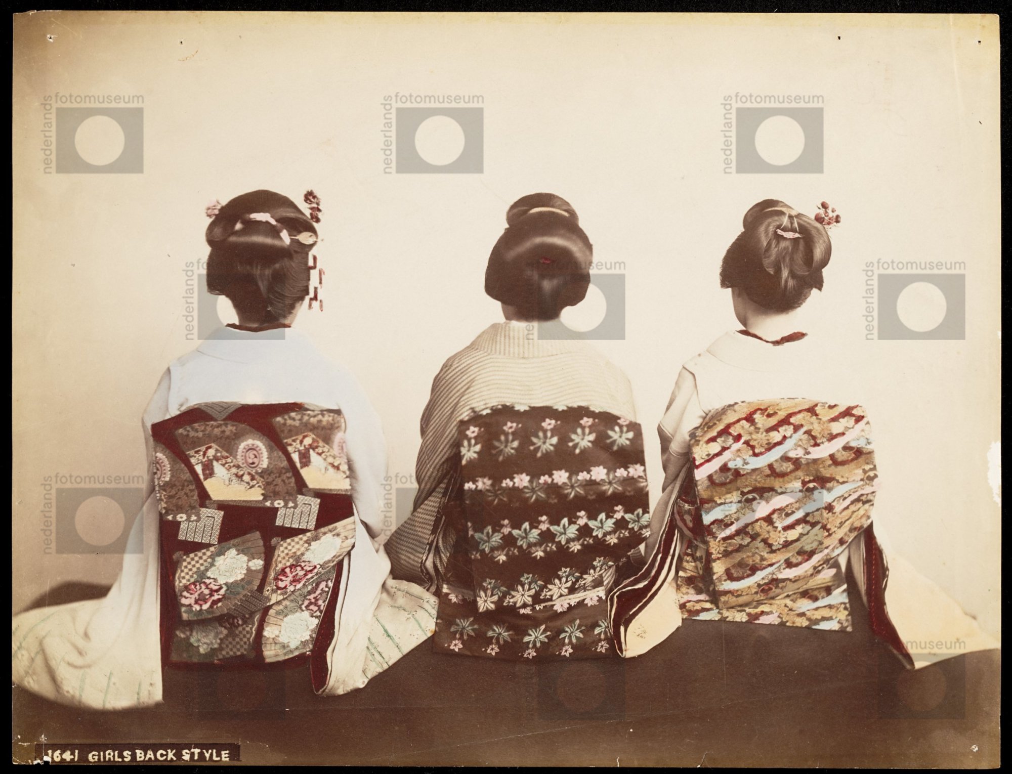 Vrouwen in kimono met obi's (sjerpen) op hun rug...