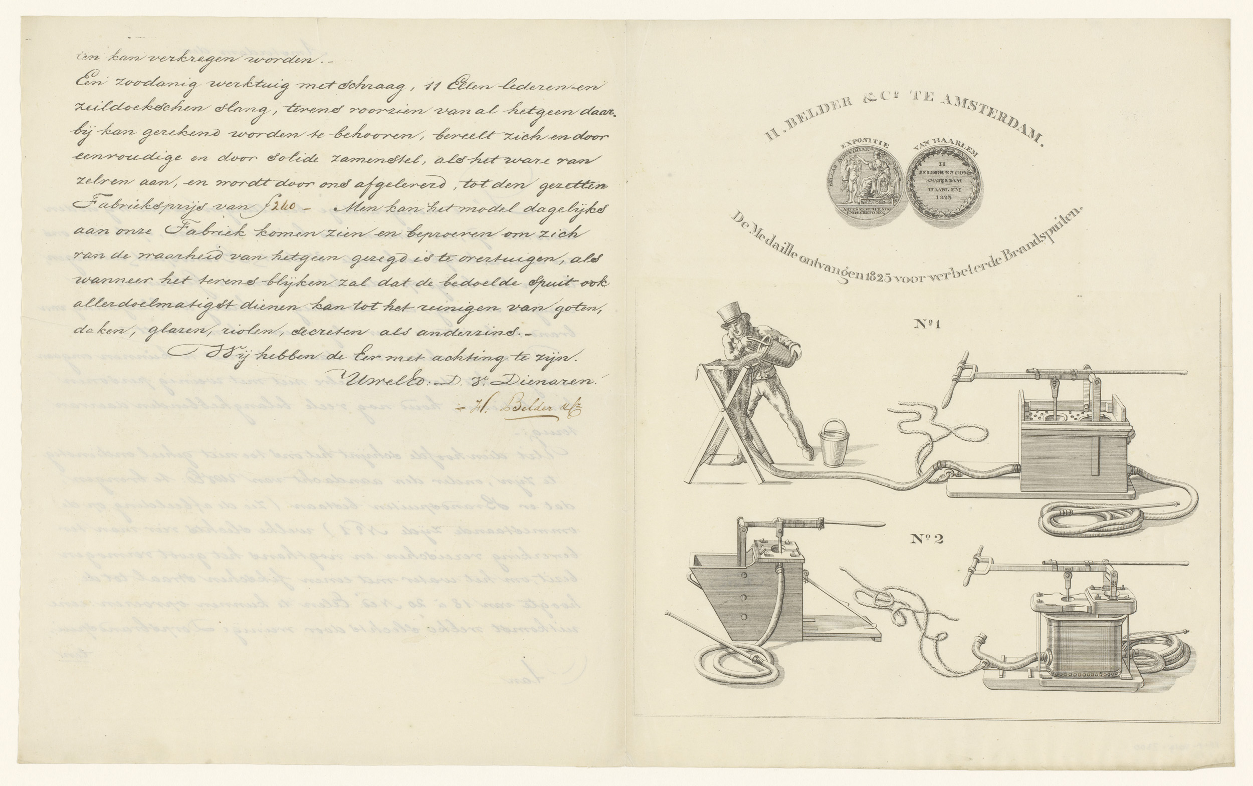 Twee afbeeldingen van brandspuiten en een geschreven...