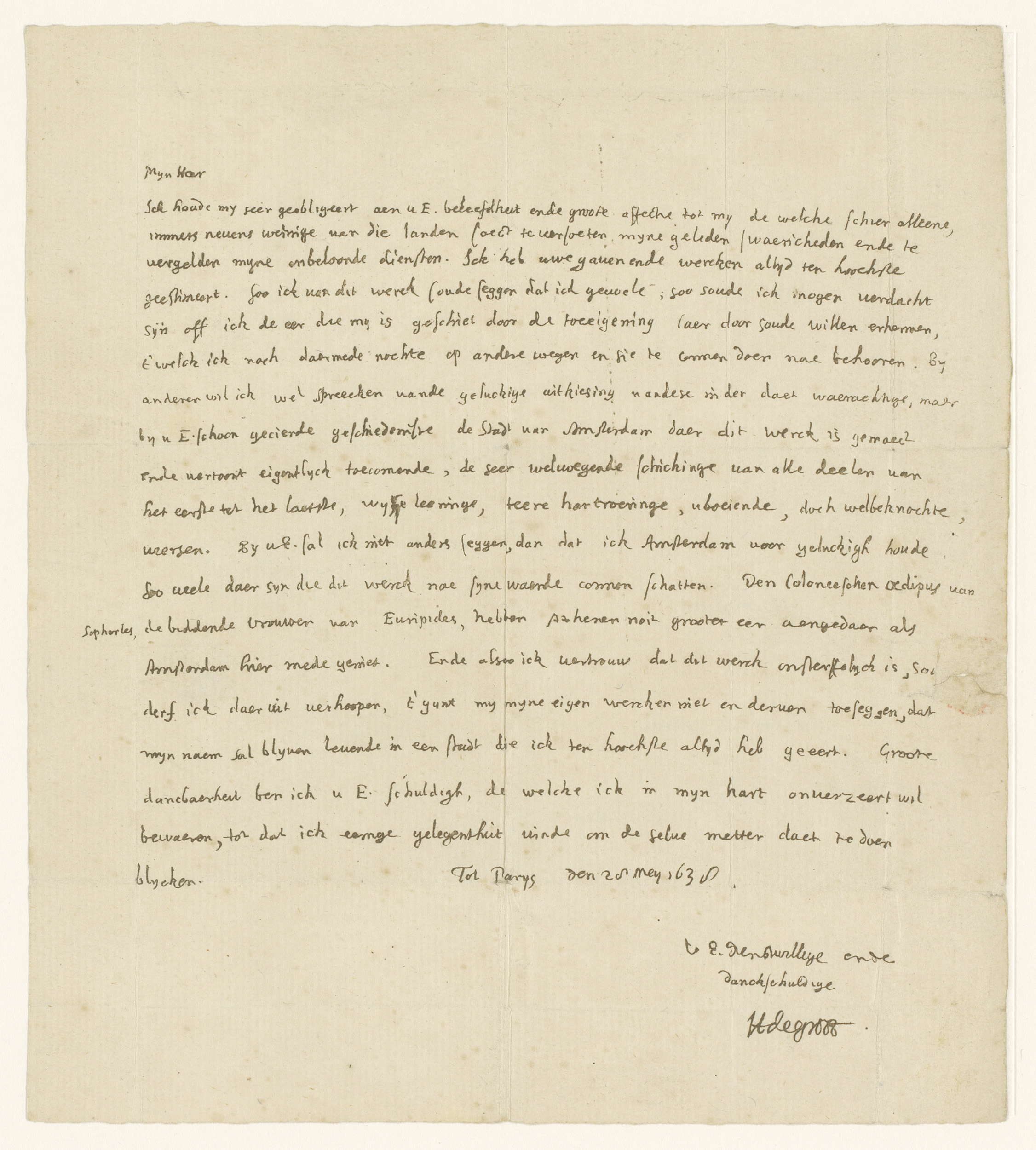 Brief van Hugo de Groot aan Joost van den Vondel