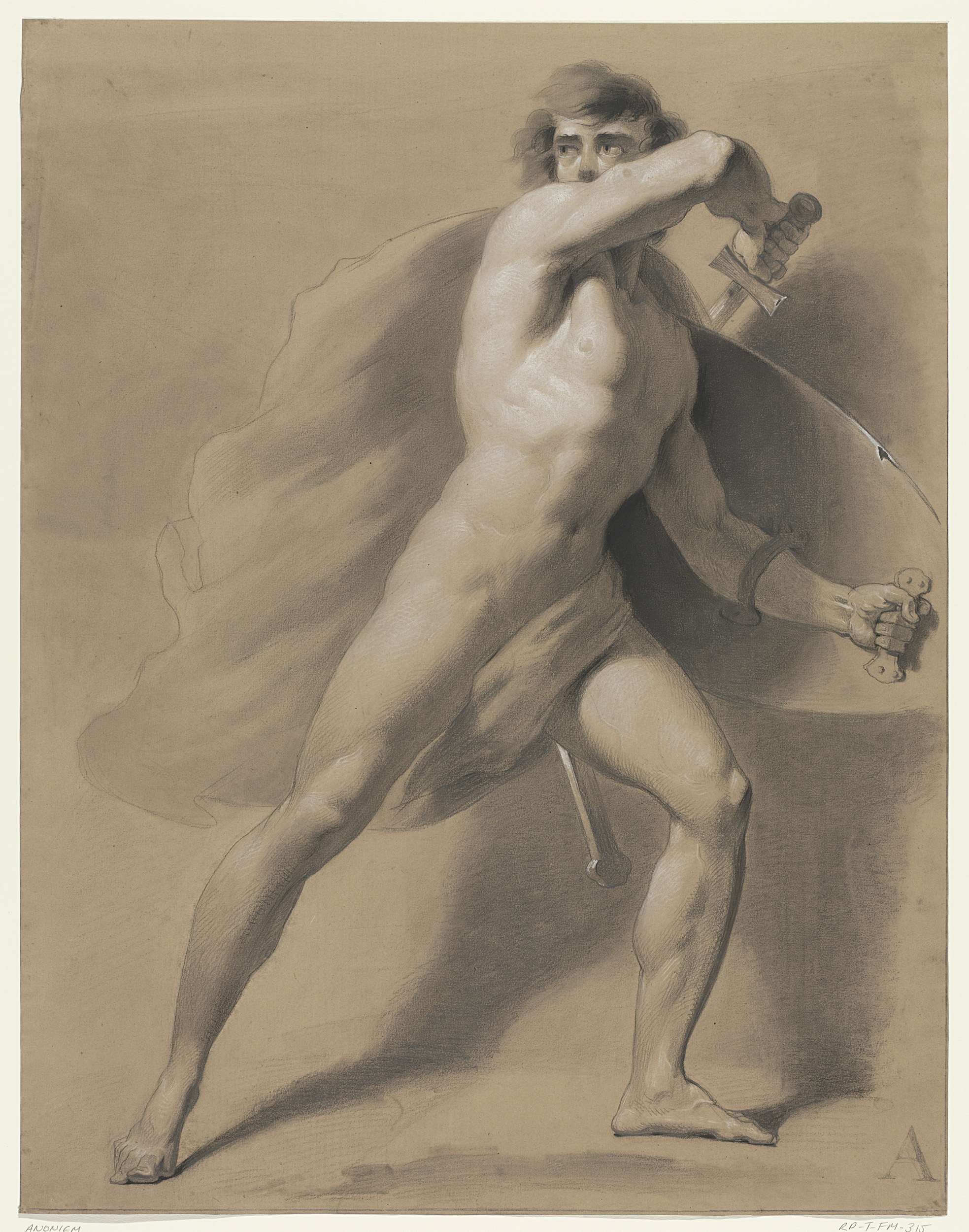 Staand mannelijk naakt, als krijgsman
