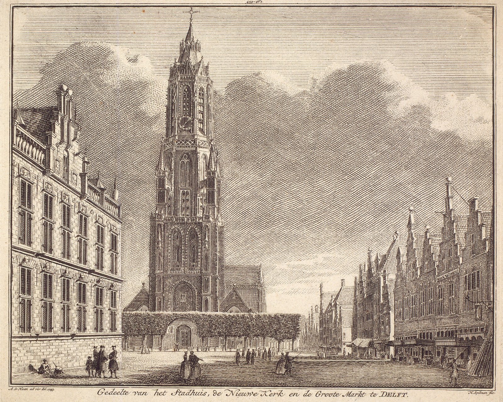 Gedeelte van het Stadhuis, de Nieuwe Kerk en de Groo...