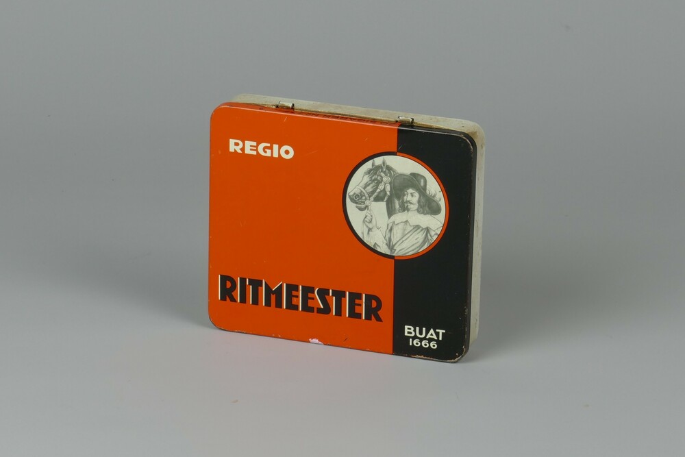 Sigarenblikje met opdruk in oranje en zwart van het ...