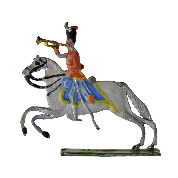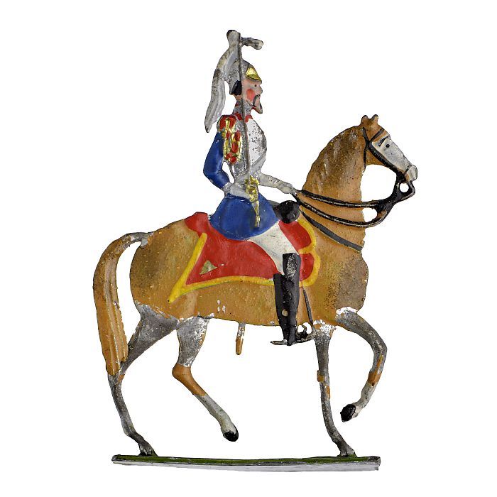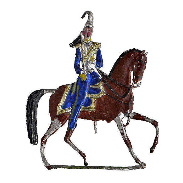 Tinnen figuren in de vorm van Engelse huzaren te paard