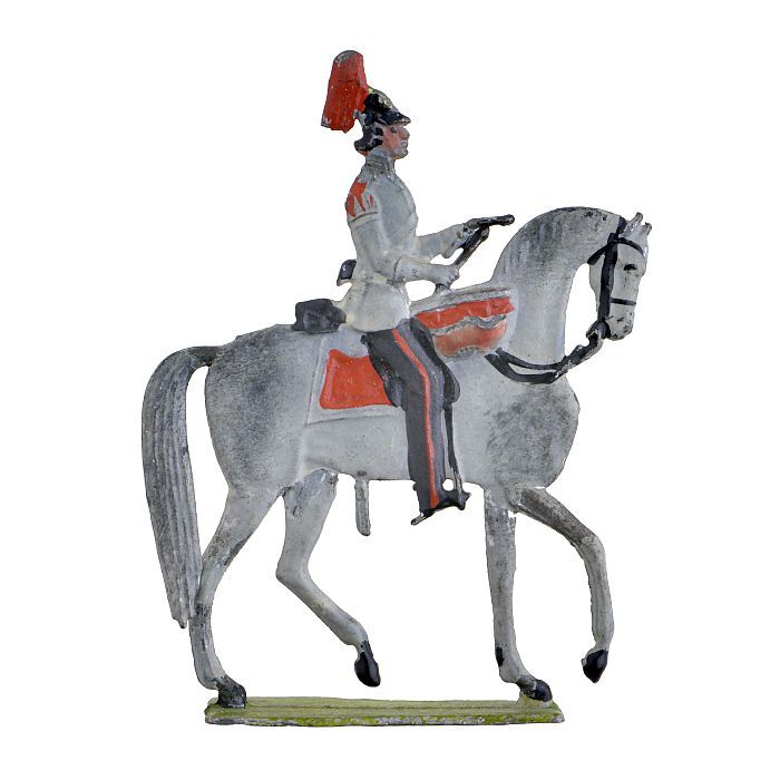 Tinnen figuur in de vorm van cavalerieofficier te paard