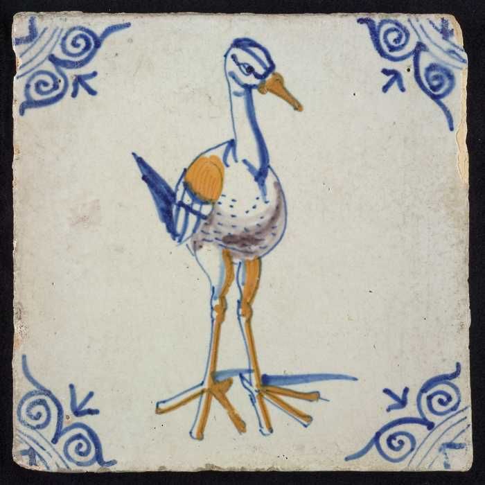 Dierentegel, blauw en oranje op wit, duif, hoekmotie...
