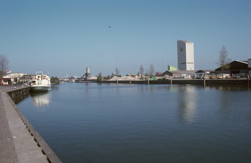 Vissershaven met zicht op de asfaltcentrale van de f...