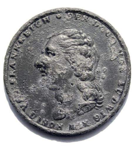 Tinnen penning/medaille, onthoofding van Lodewijk XV...