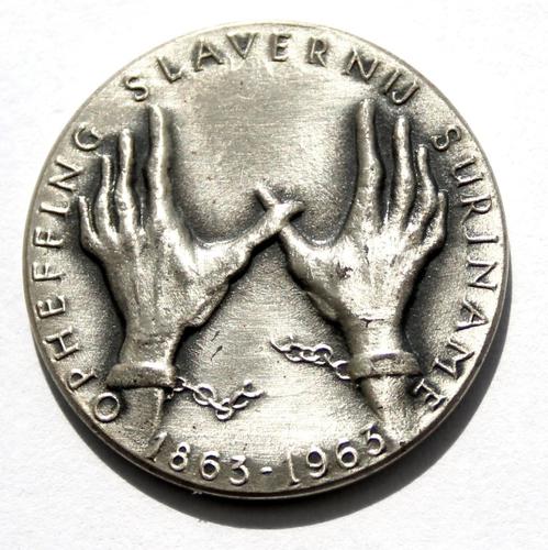 Nikkelen legpenning, opheffing slavernij Suriname 10...