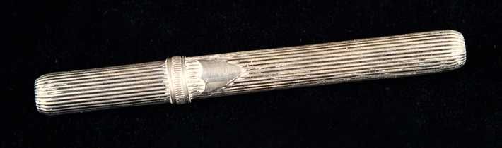 Zilveren geribde naaldenkoker met blanco wapenschild...