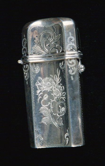Zilveren zwavelstokkendoosje met deksel en gegraveer...