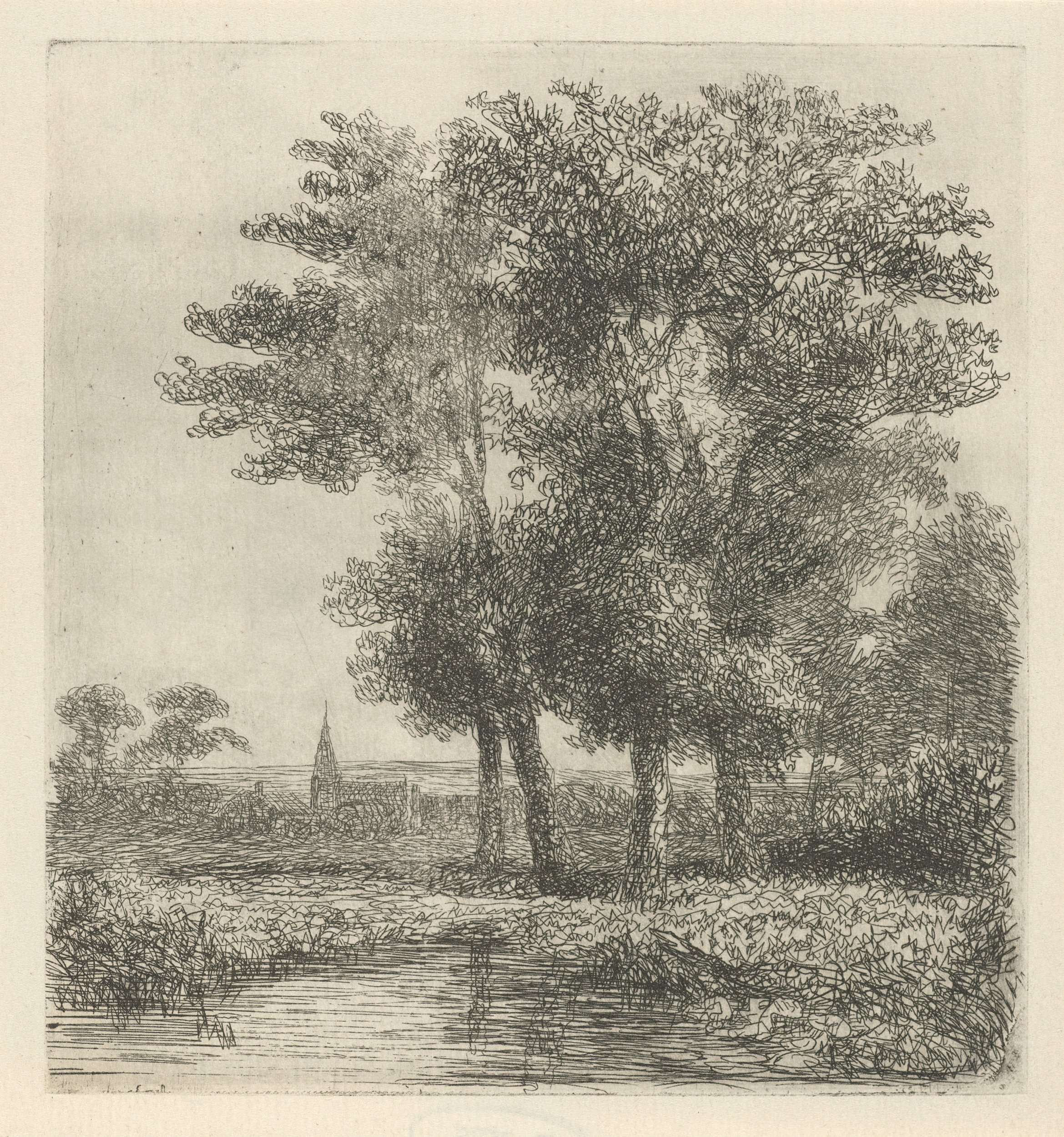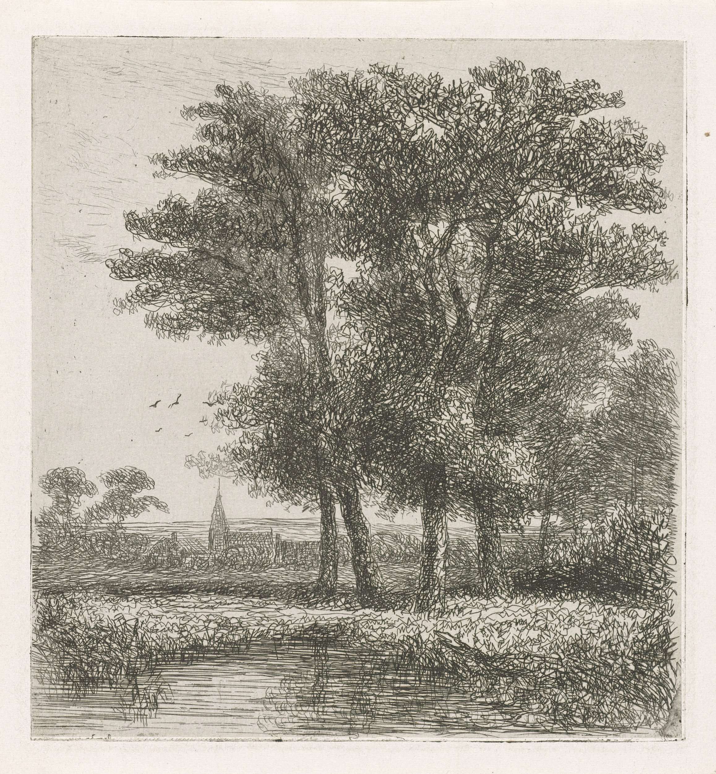Vier bomen aan een vennetje