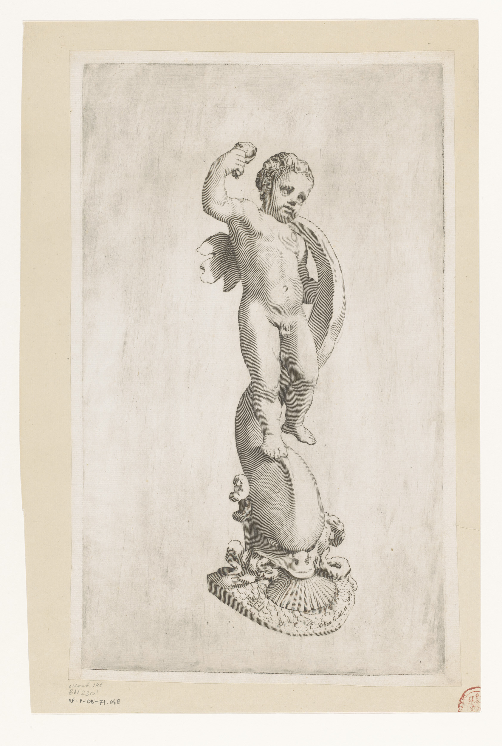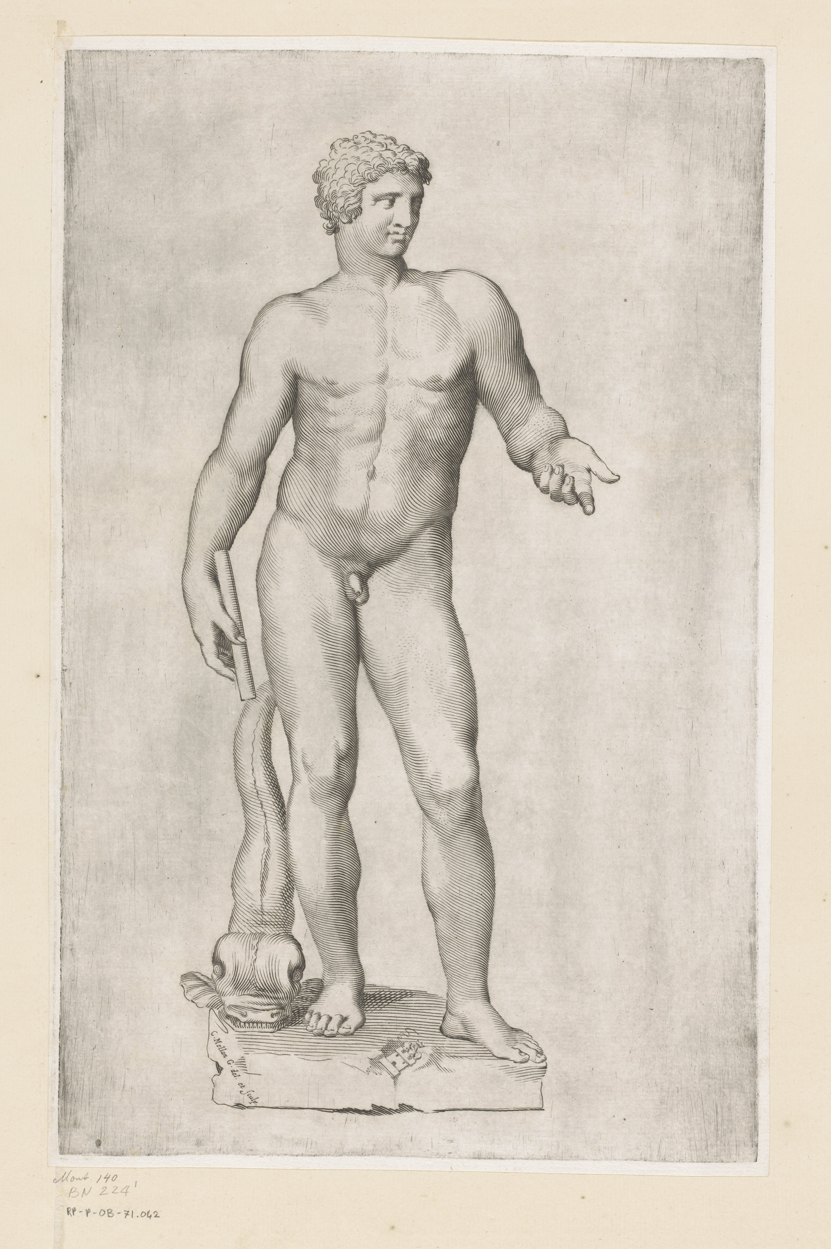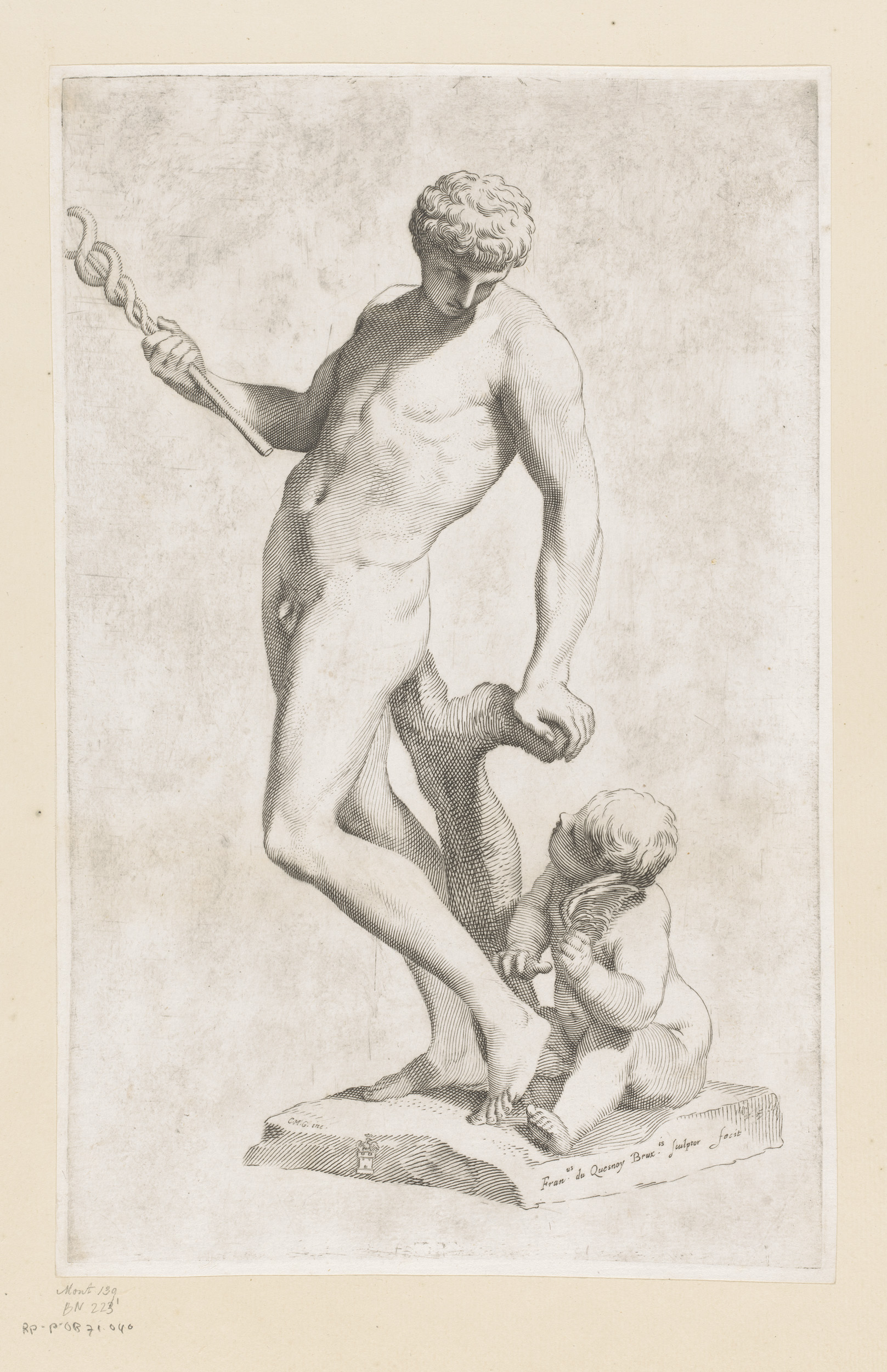 Standbeeld van Mercurius met een putto aan zijn voeten