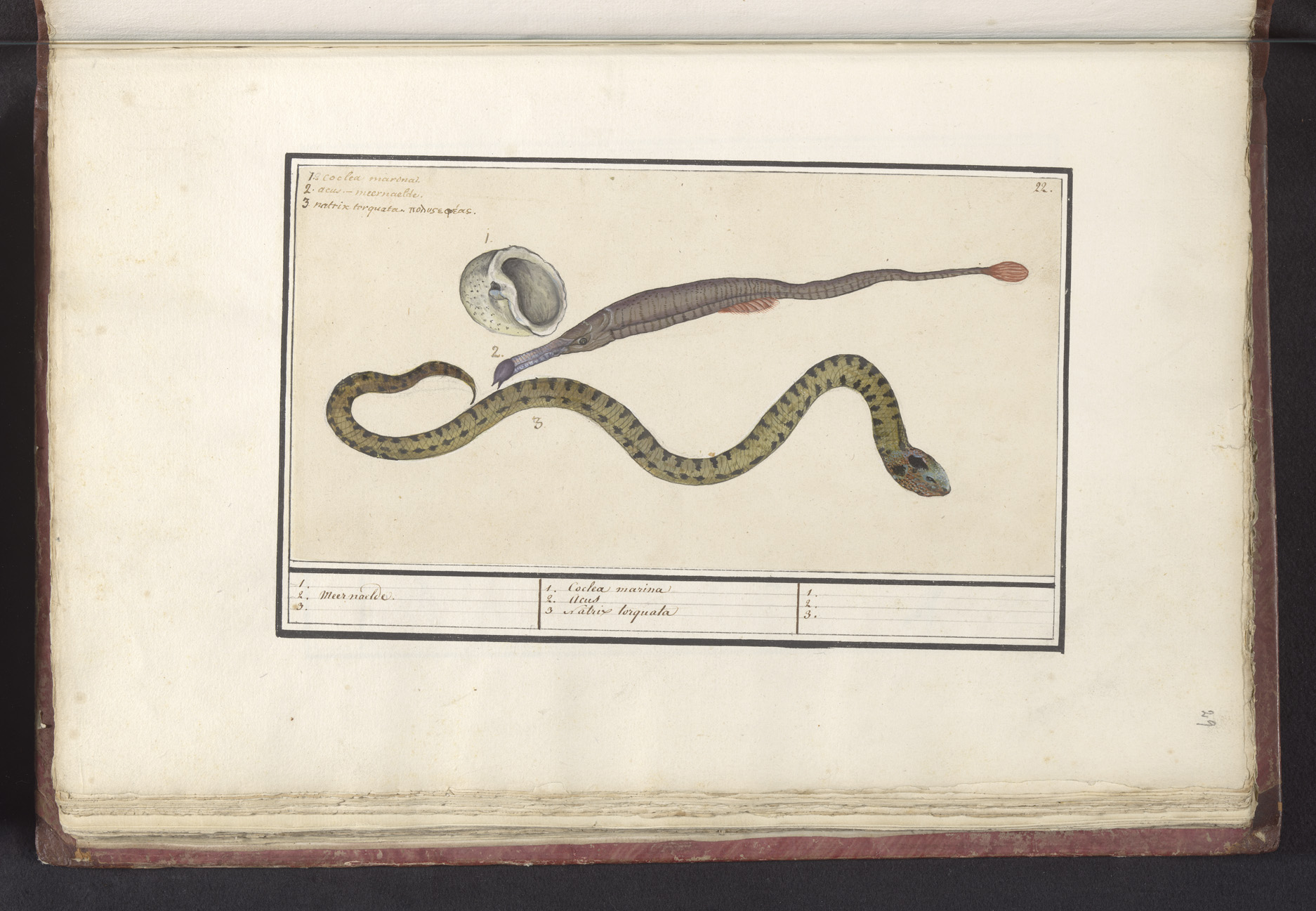 Zeeschelp, zeenaald (Syngnathus) en waterslang (Natrix)