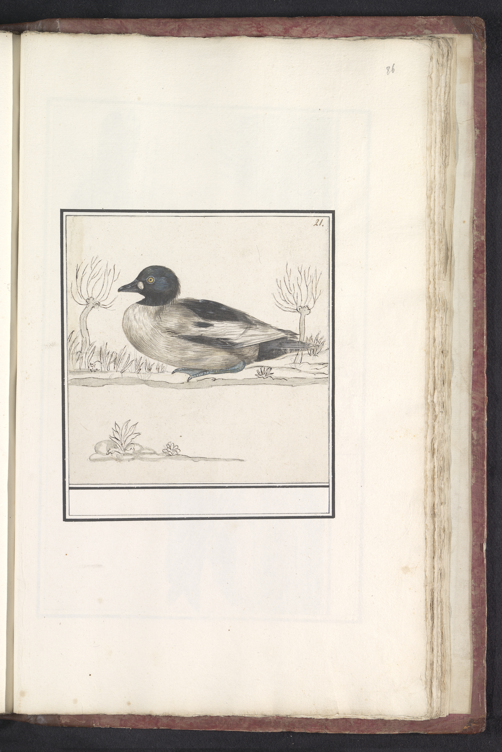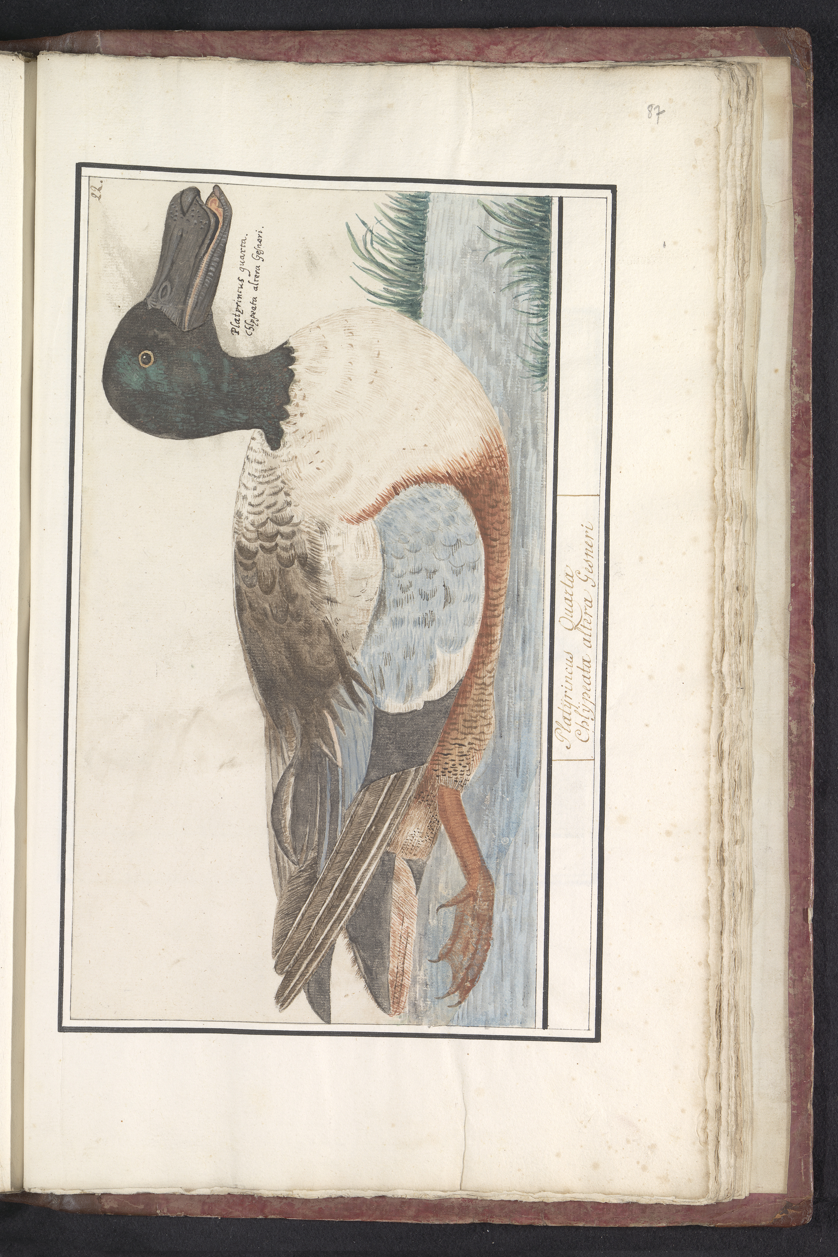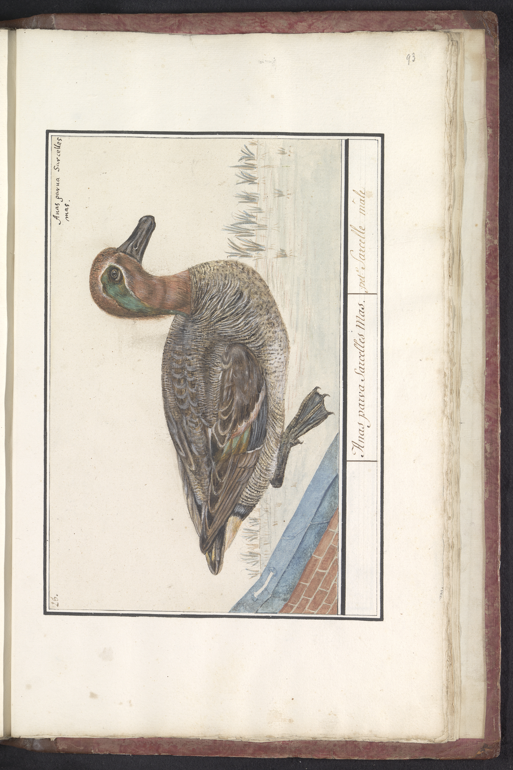 Blad met zes eenden (Anas) en andere watervogels