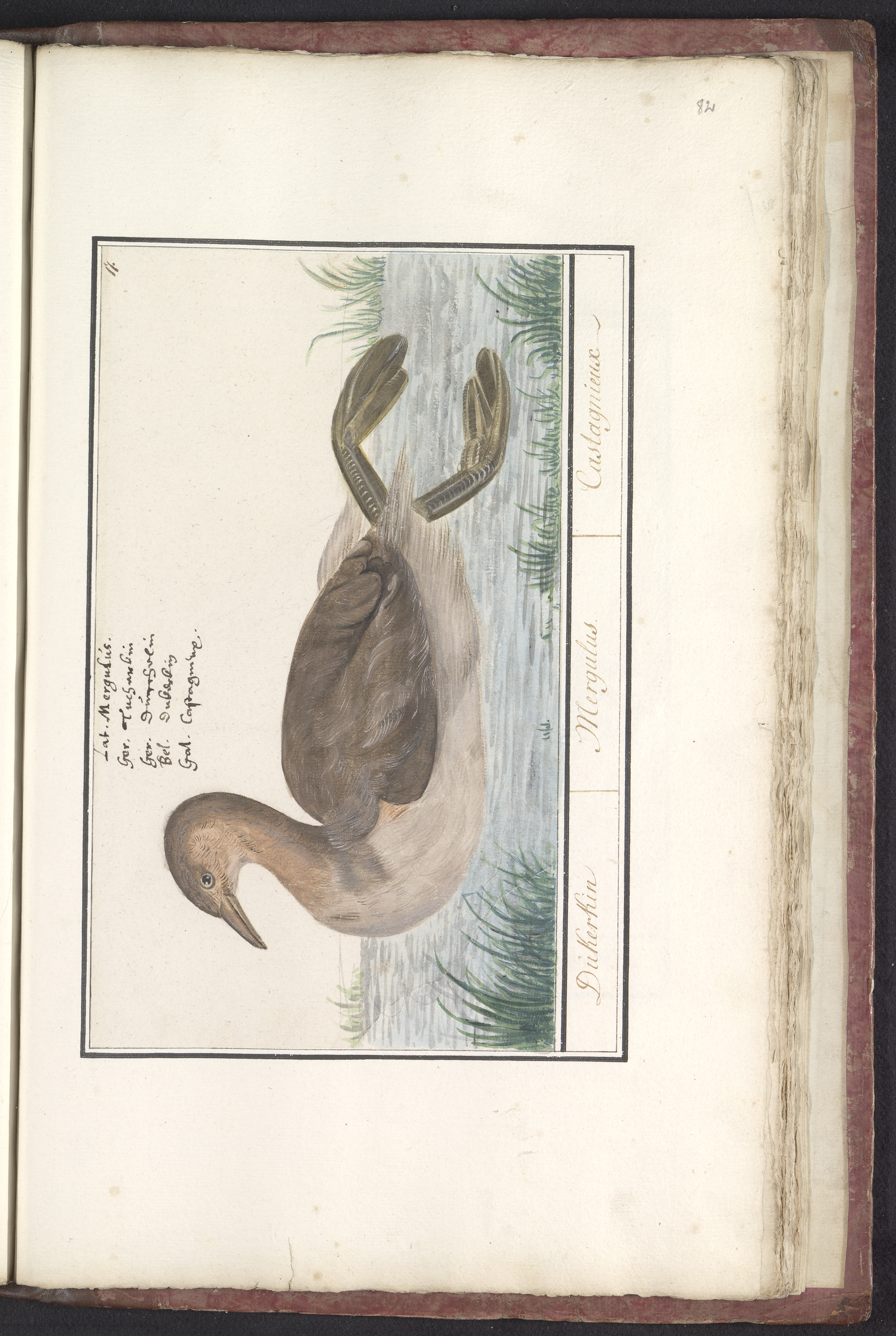 Blad met acht eenden (Anas), zaagbekken (Mergus) en ...