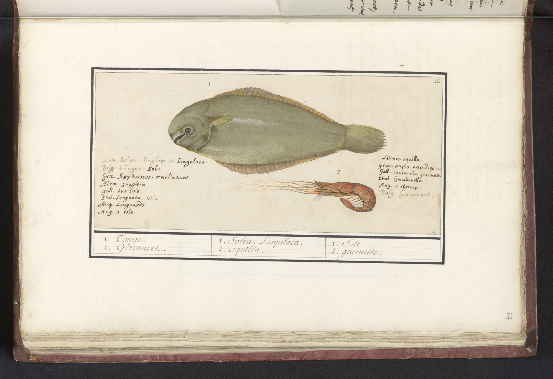 Tong (Solea solea) en roze garnaal