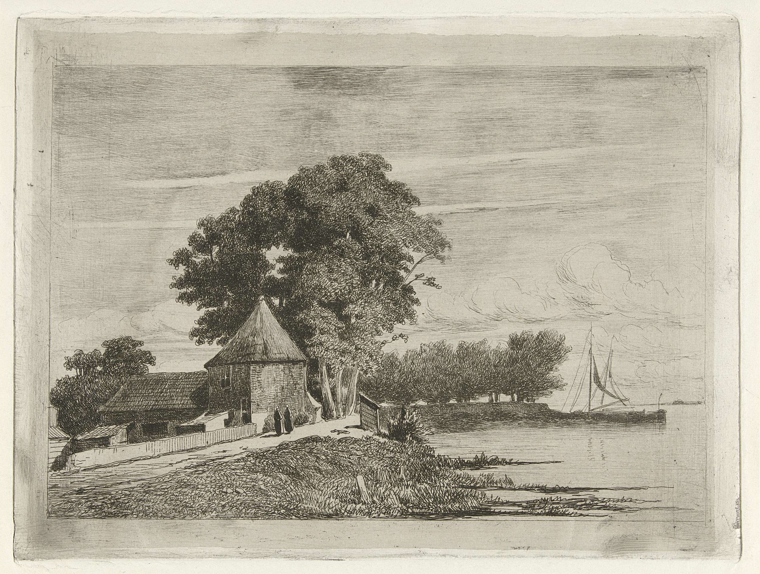 Landschap met links een boerderij