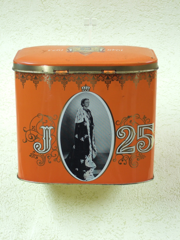 trommel van blik, ter gelegenheid van 25-jarig reger...