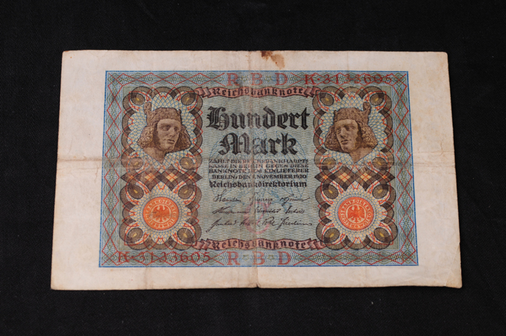 Bankbiljetten van papier 2 stuks van 100 mark 1920