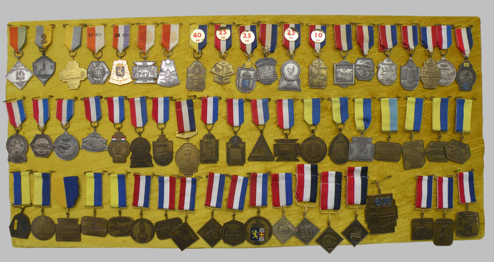 Bord met medailles van de Veluwe Wandeltocht