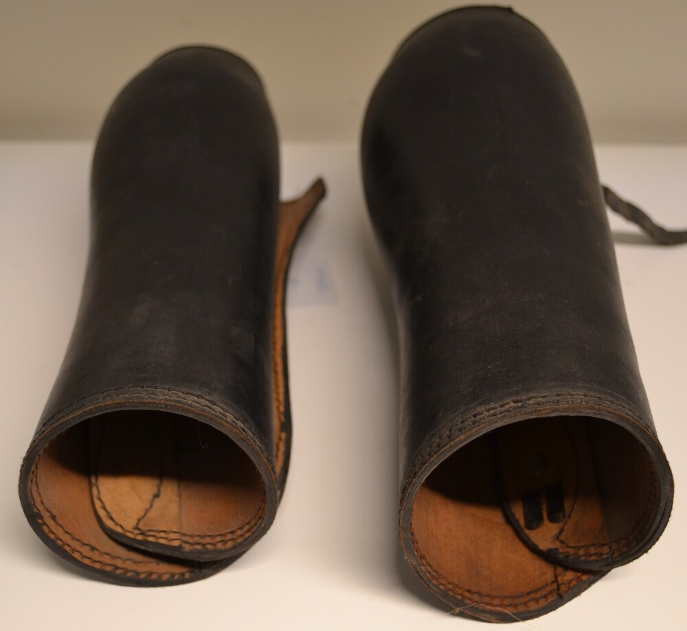 Paar beenkappen van leer behorend bij een uniform va...