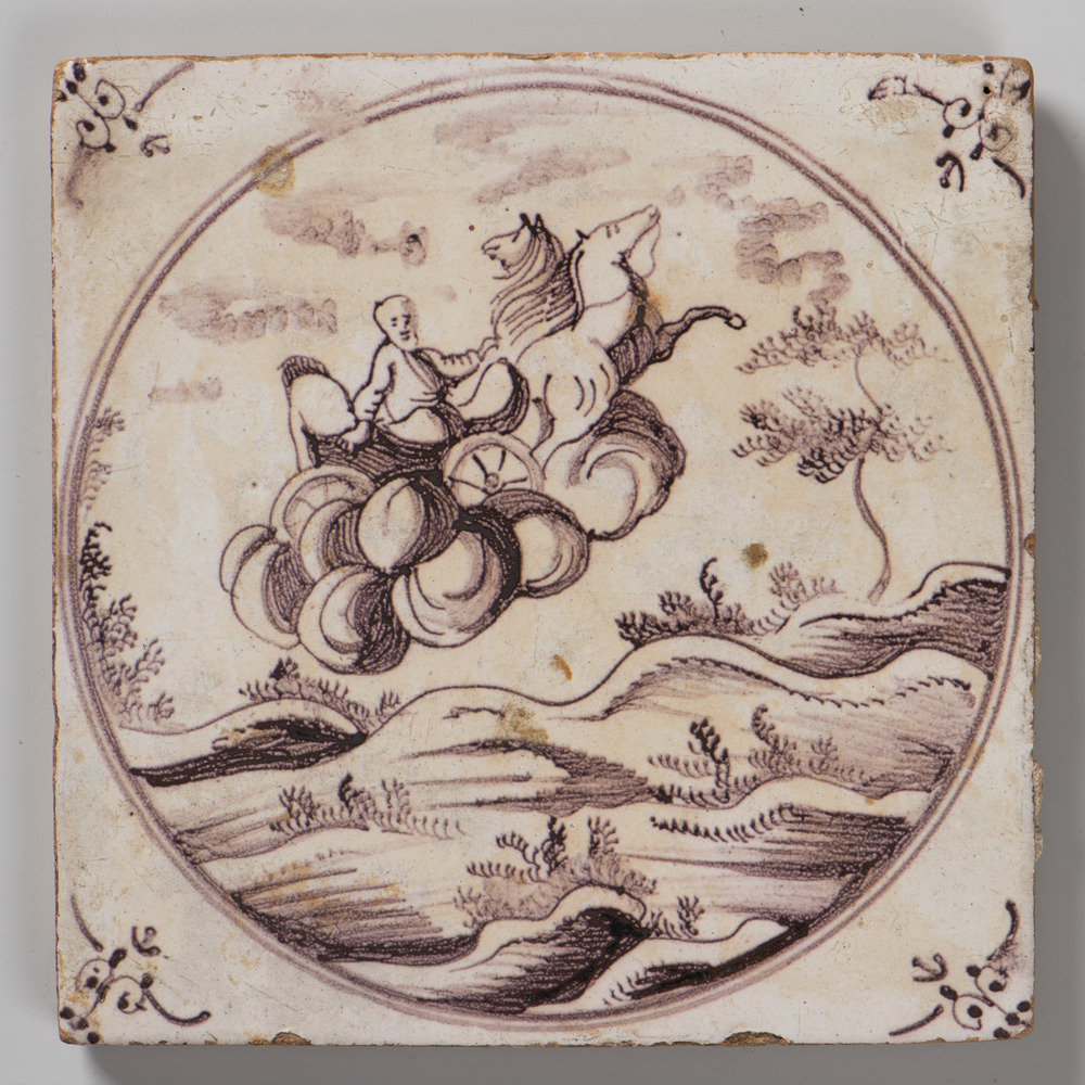 tegel van aardewerk in transfertechniek, voorstellen...
