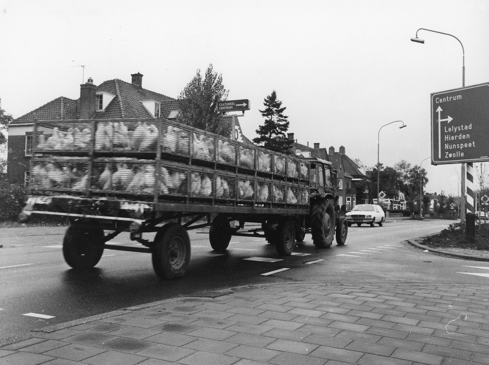 Een kooiwagen met eenden op de Stationslaan