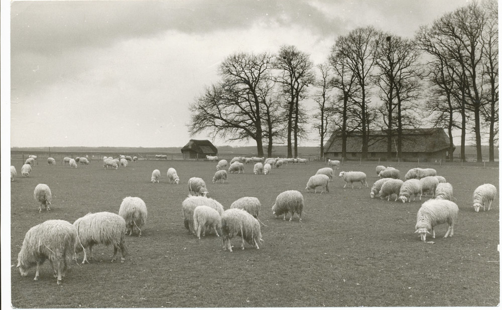 Schapen bij de schaapskooi op de Ginkelse Heide