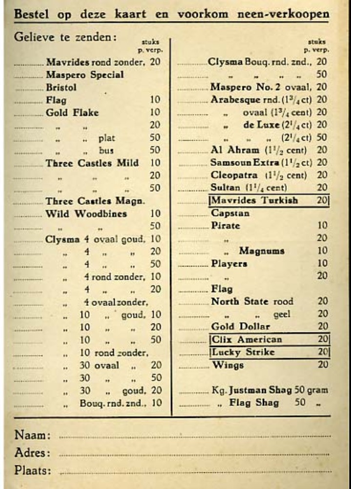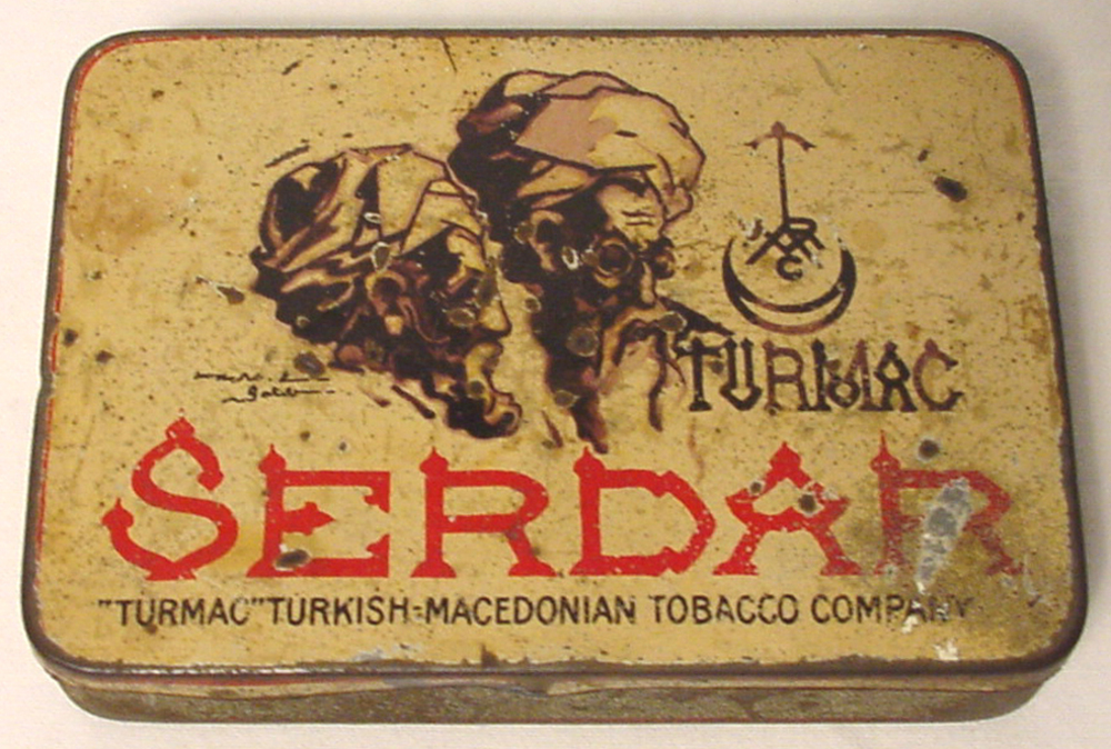 Houder van blik voor Turmac Serdar sigaretten circa....