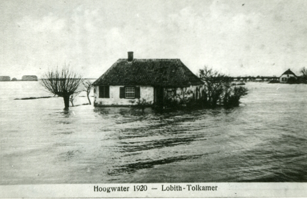 Zwart-wit foto van het hoogwater in Lobith-Tolkamer ...