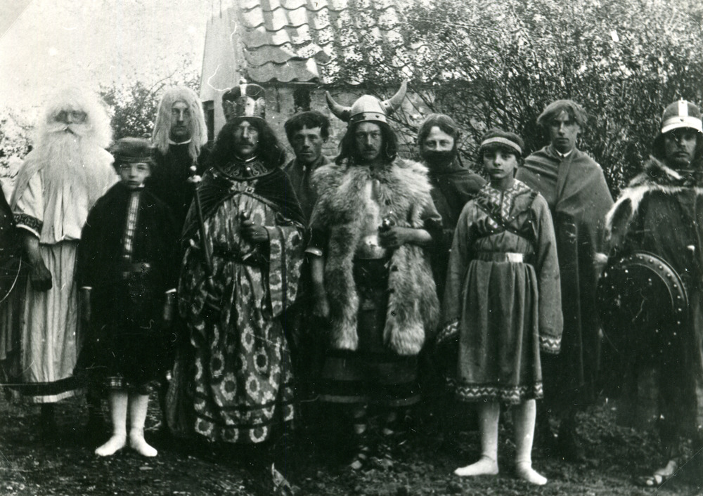 Zwart-wit foto van de toneelvereniging in Herwen 1920
