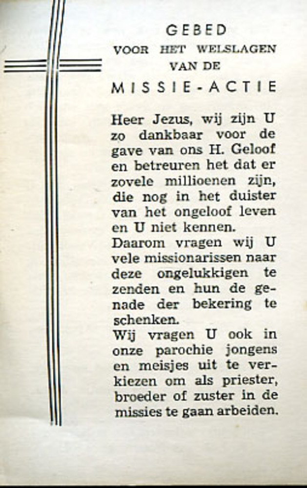 Prentje Gebed voor het welslagen van de Missie-actie...