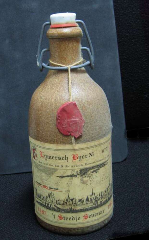 Fles van glas met etiket van papier en afsluiting va...