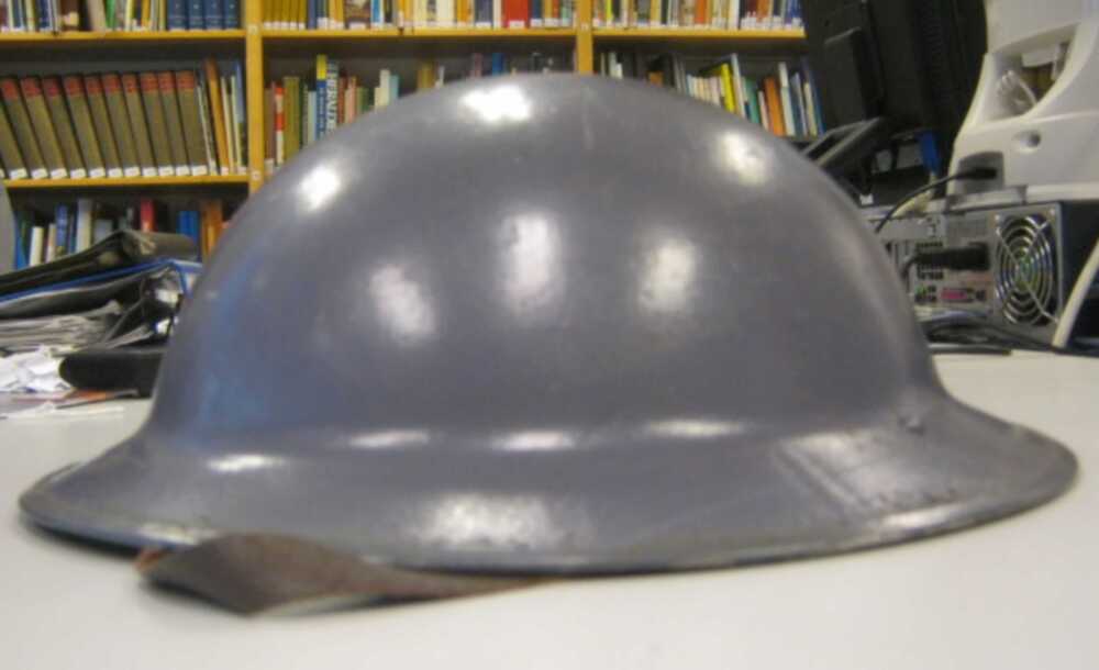 Helm van staal met een binnenwerk van leer en in geb...
