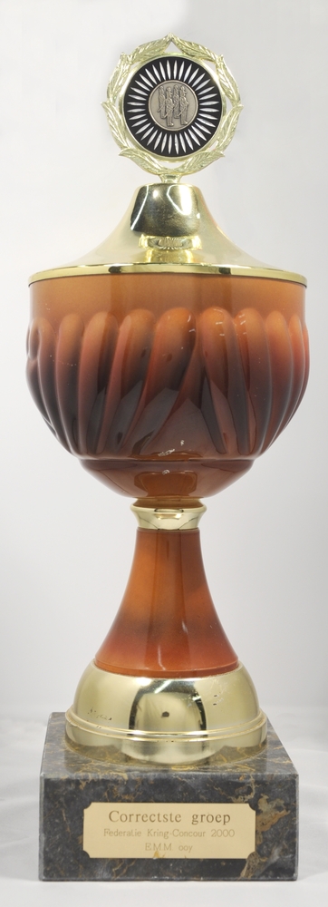 Prijzenbeker van metaal roodbruin behaald in 2000 do...