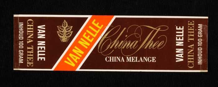 Bruin, papieren label VAN NELLE CHINA THEE, Chinese ...