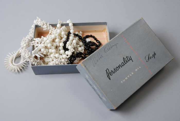 Halsketting, snoer van witte kunststof kraaltjes en ...