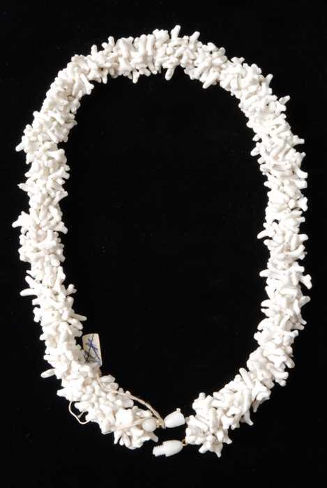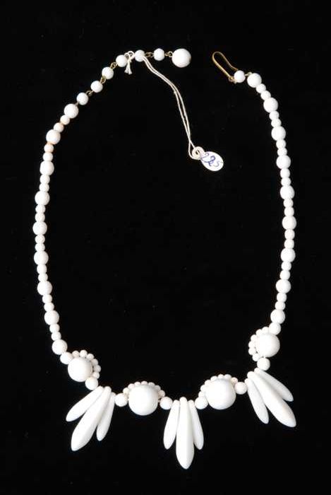 Halsketting, snoer van staafjes wit plastic imitatie...