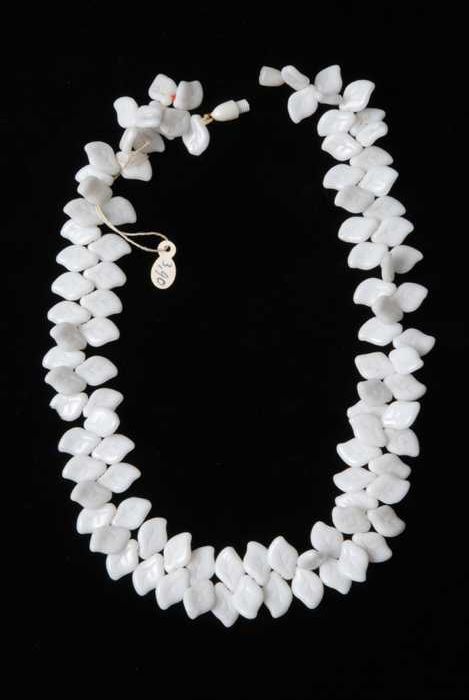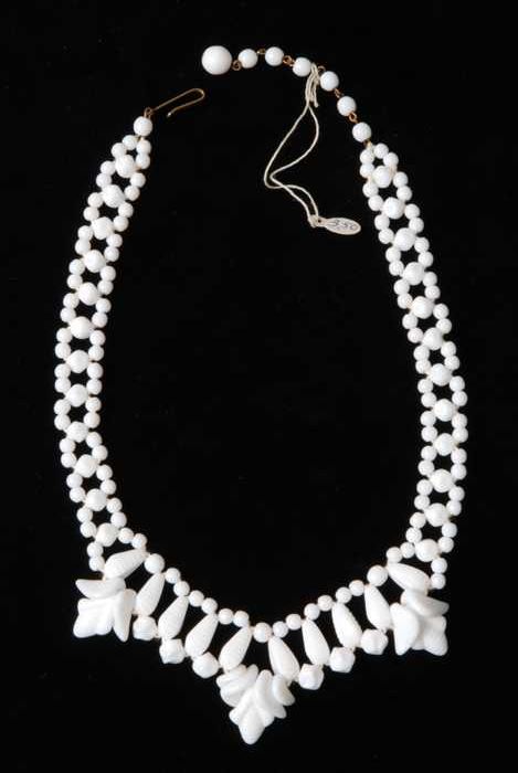 Halsketting, snoer van witte glazen blaadjes, witte ...