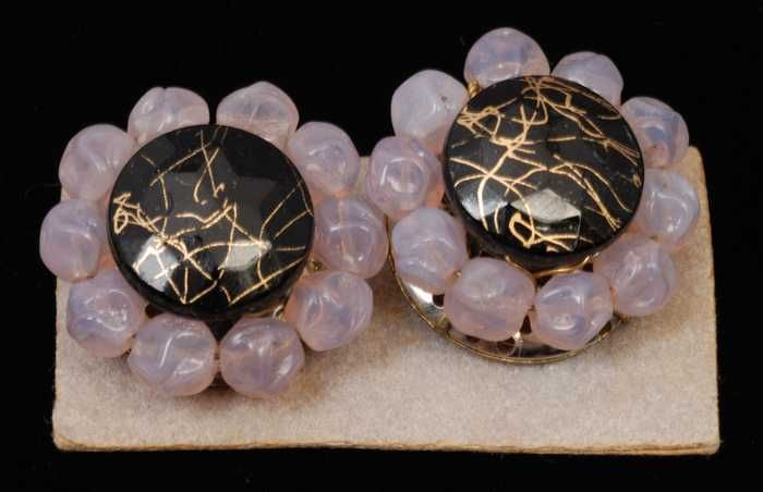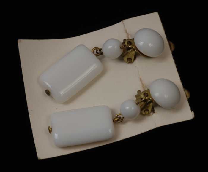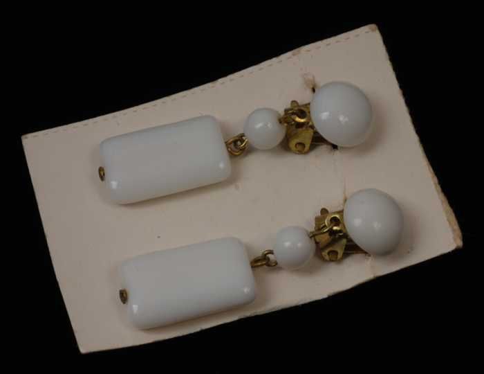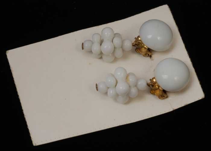 Paar oorbellen, clips met wit glazen bollen met gekl...