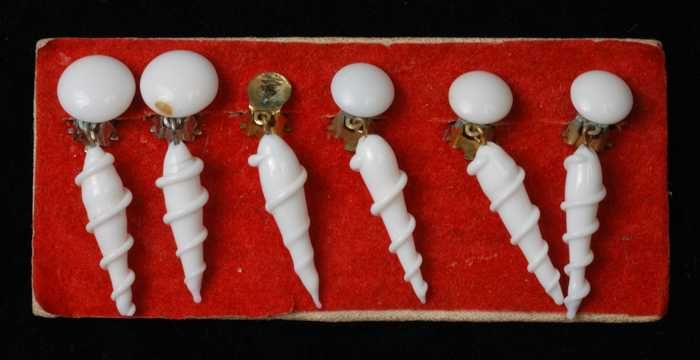 Paar oorbellen, clip met gedraaide pegel van wit gla...