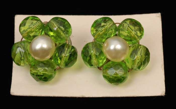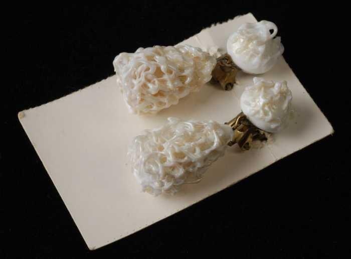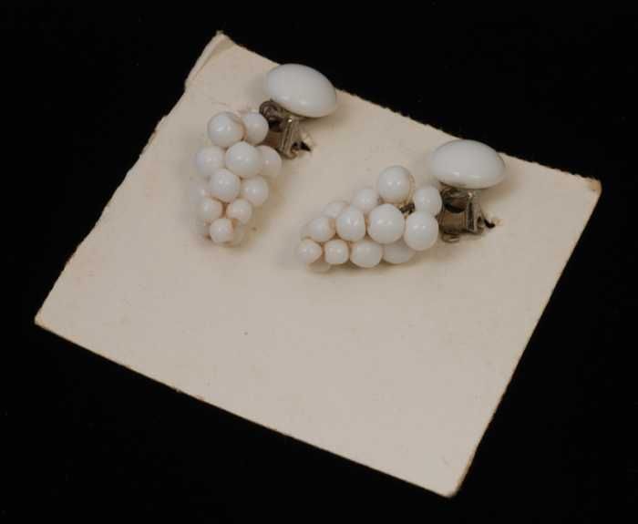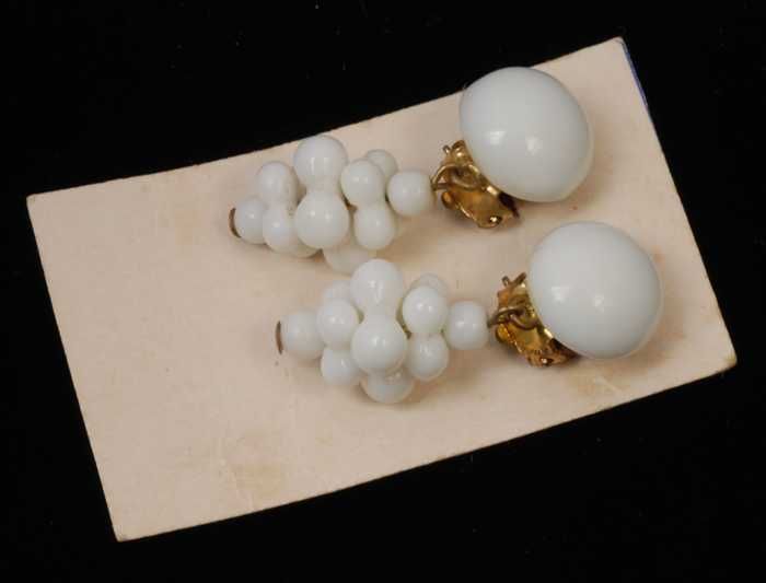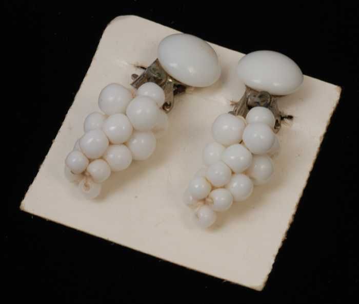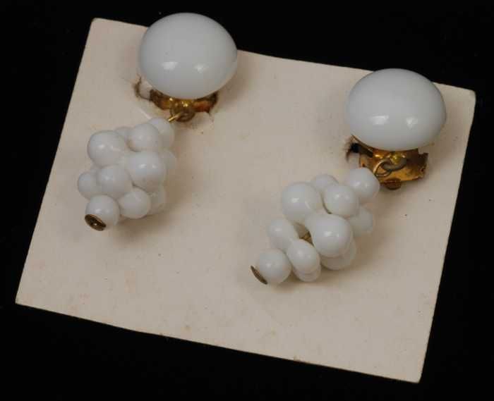 Paar oorbellen, clip met druiventros van wit glazen ...