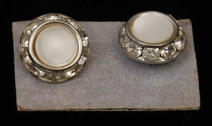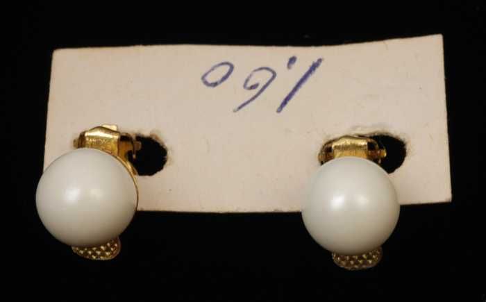 Paar oorbellen, clips met witte plastic pegels met s...
