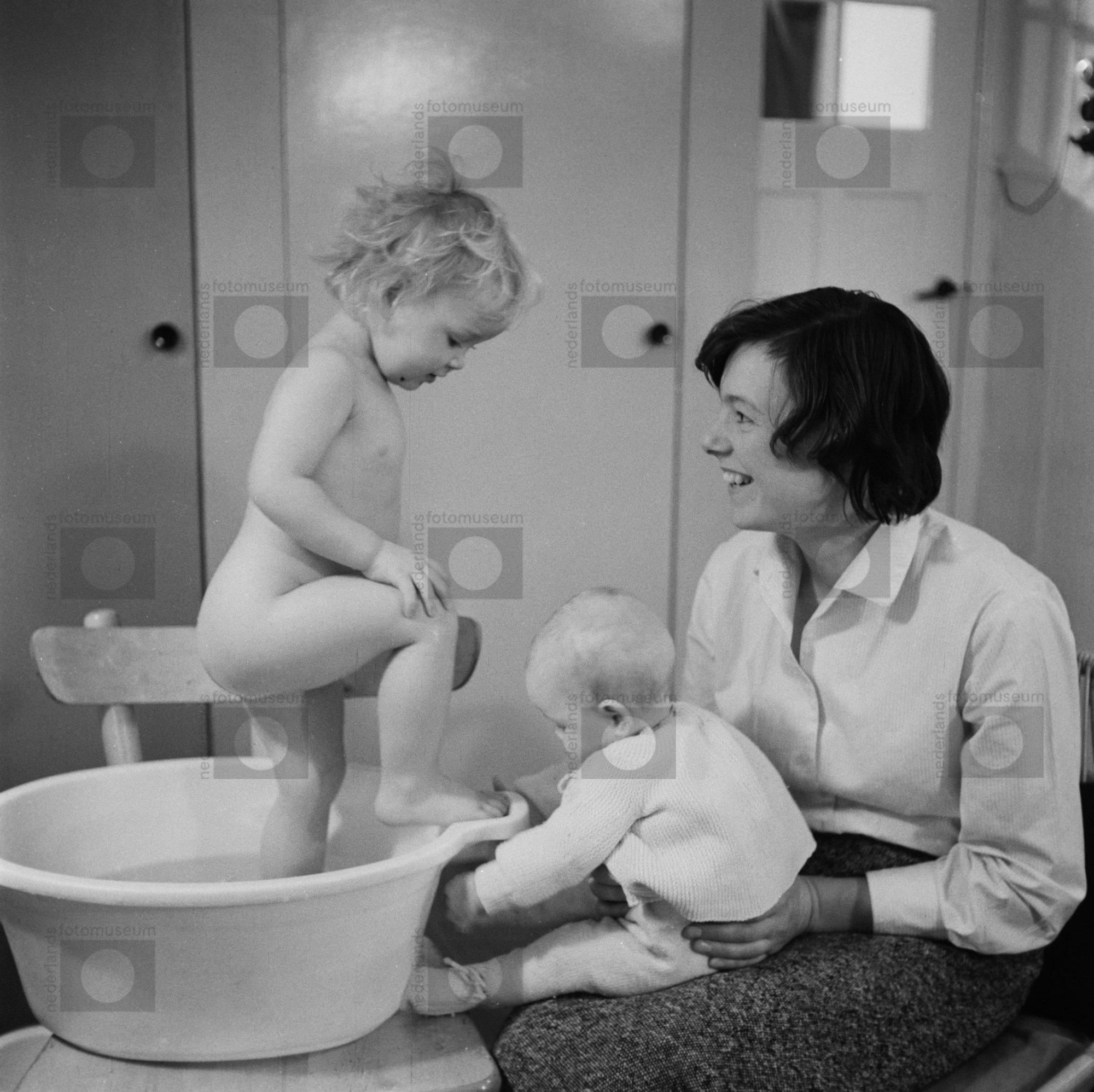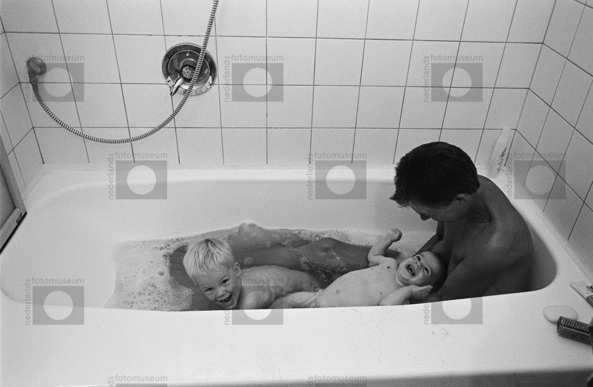 Amsterdam. Schellingwoude. Ine in bad met Daan en Th...