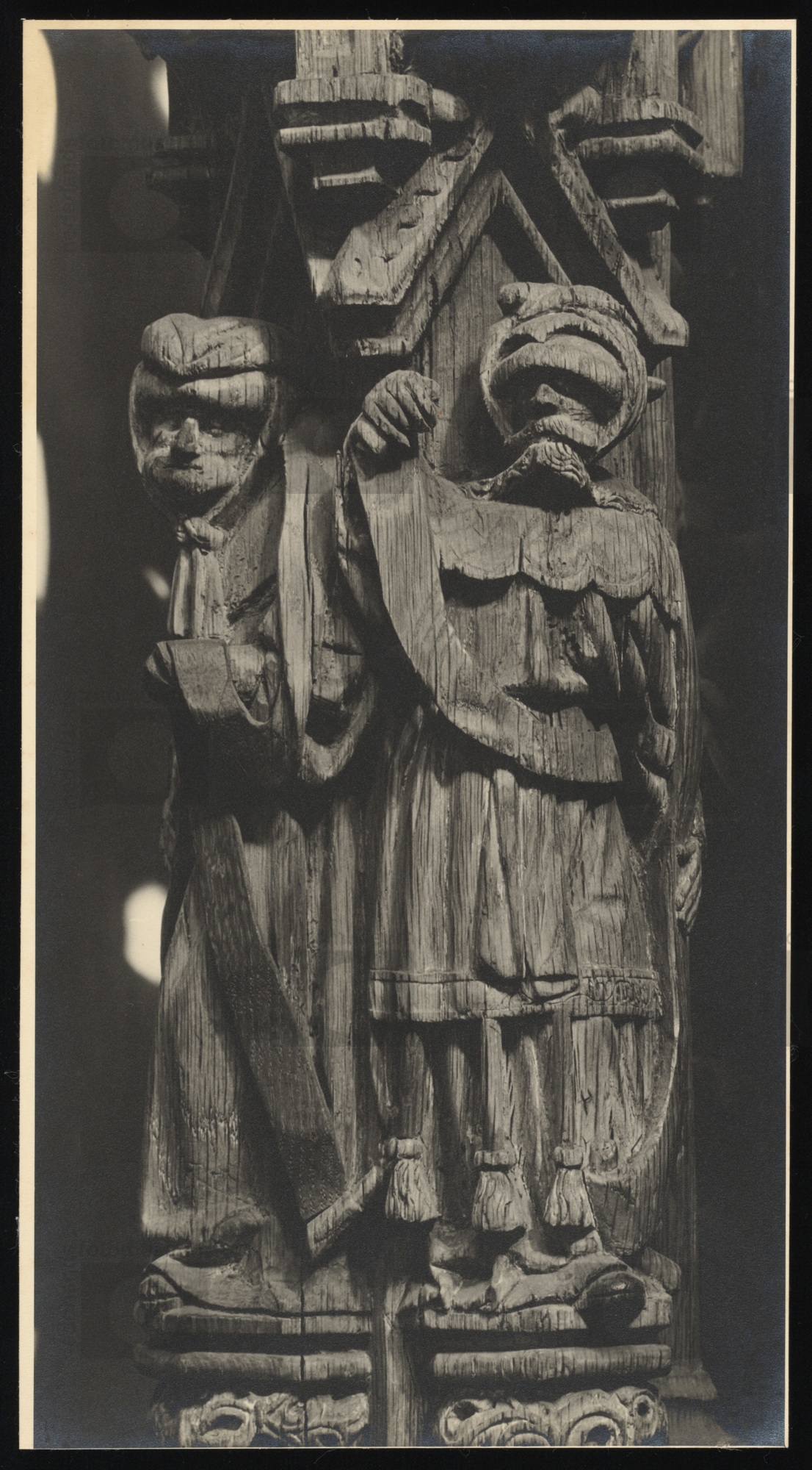 Met houtsnijwerk bewerkte lange kleine trom, Noord N...