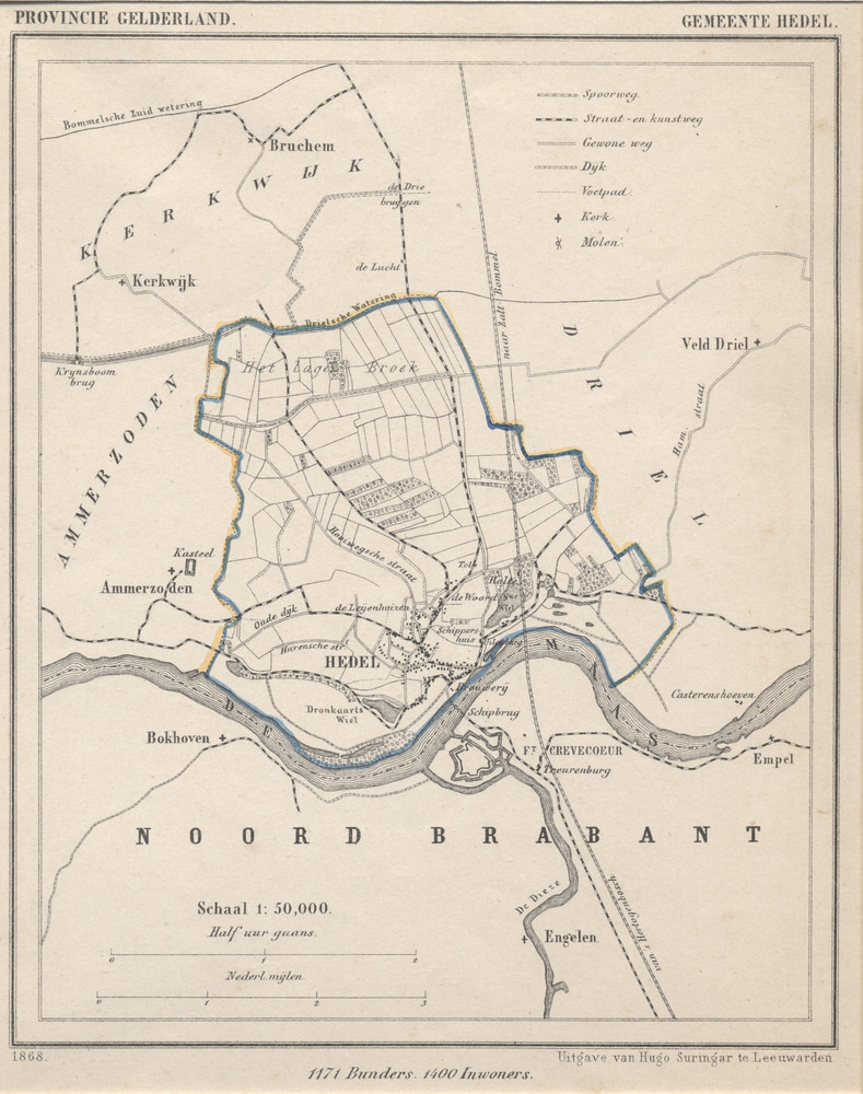 kaart van het grondgebied van de gemeente Hedel. Top...