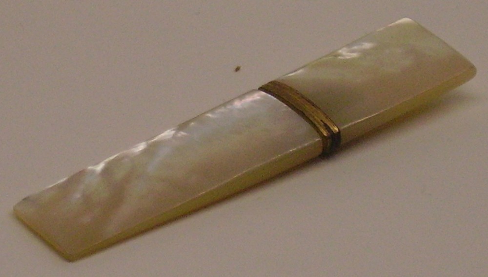 Houder van parelmoer voor naalden.