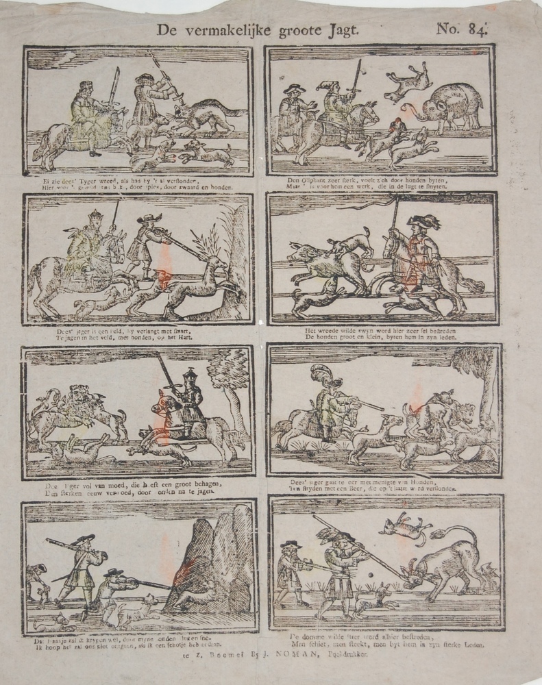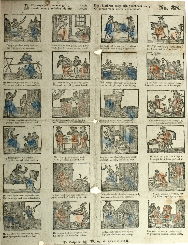 Centsprent met vier en twintig gekleurde prentjes me...