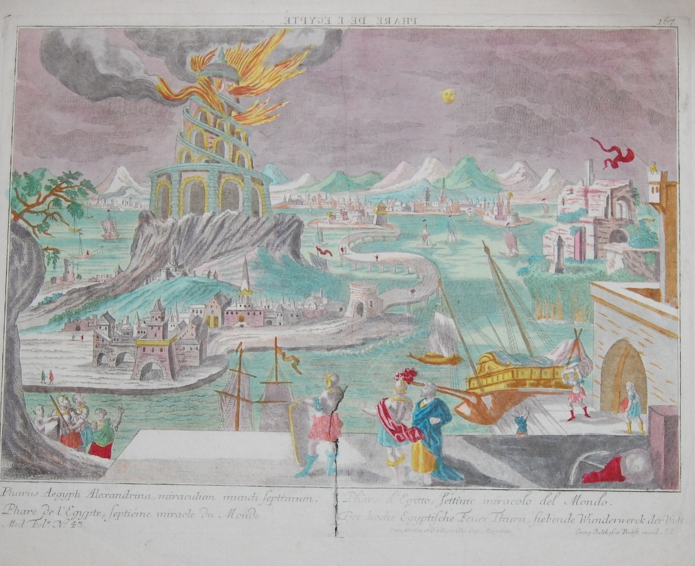 Opticaprent, gezicht op de vuurtoren van Alexandrië ...